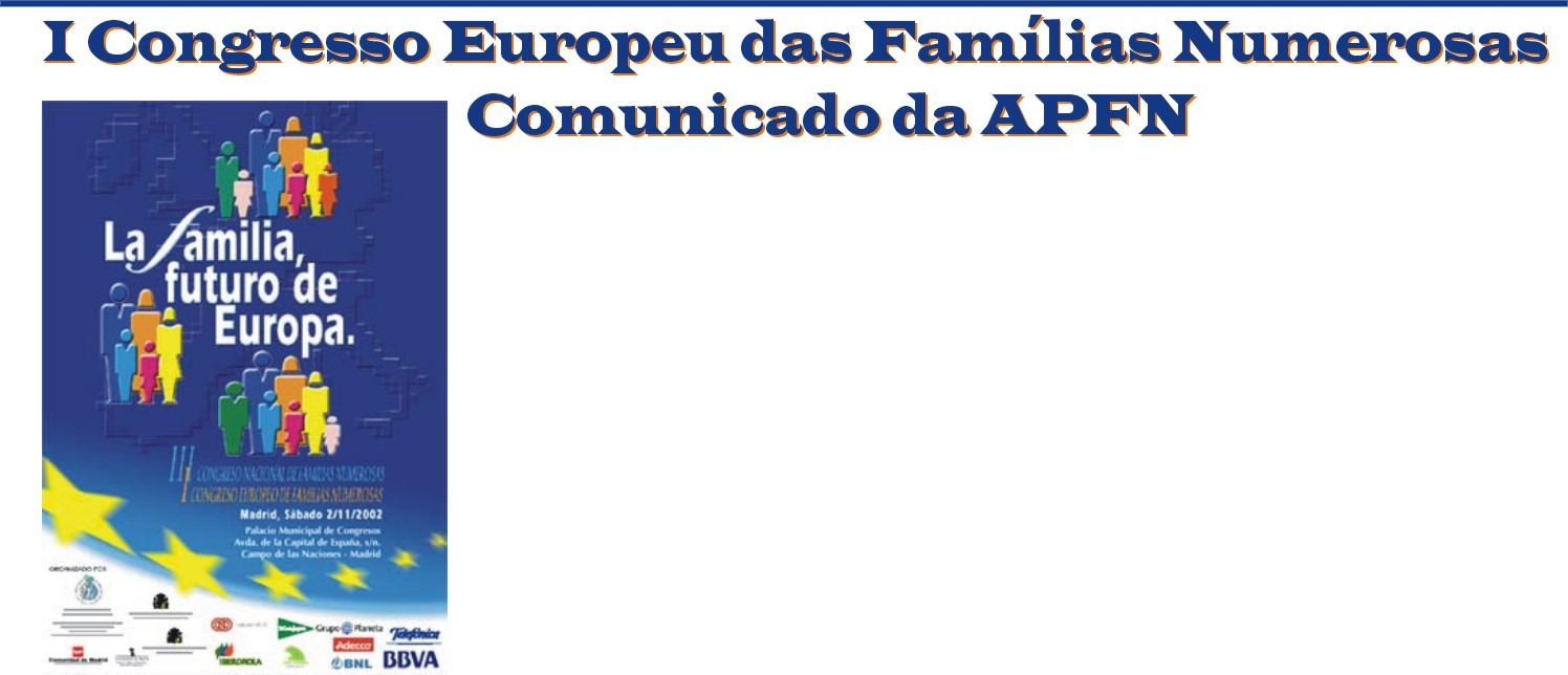 Congresso Europeu das Famílias Numerosas - comunicado da APFN
