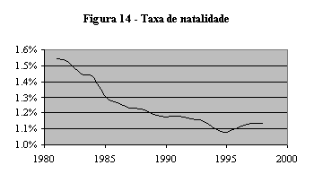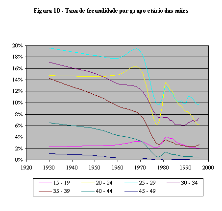 Na figura 10, é evidente a queda da taxa de fecundidade nos