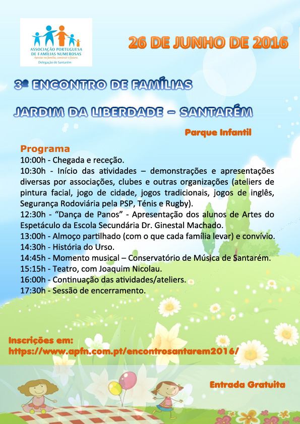 3º Encontro de Famílias. Organização: APFN - Delegação de Santarém - 26 de junho de 2016
