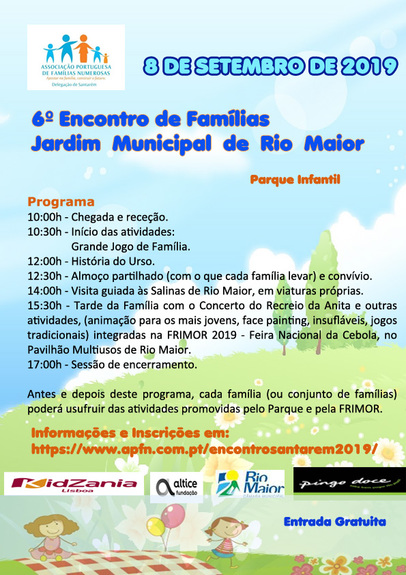 6º Encontro de Famílias. Organização: APFN - Delegação de Santarém - 2019 - 8 de setembro de 2019 - Rio Maior