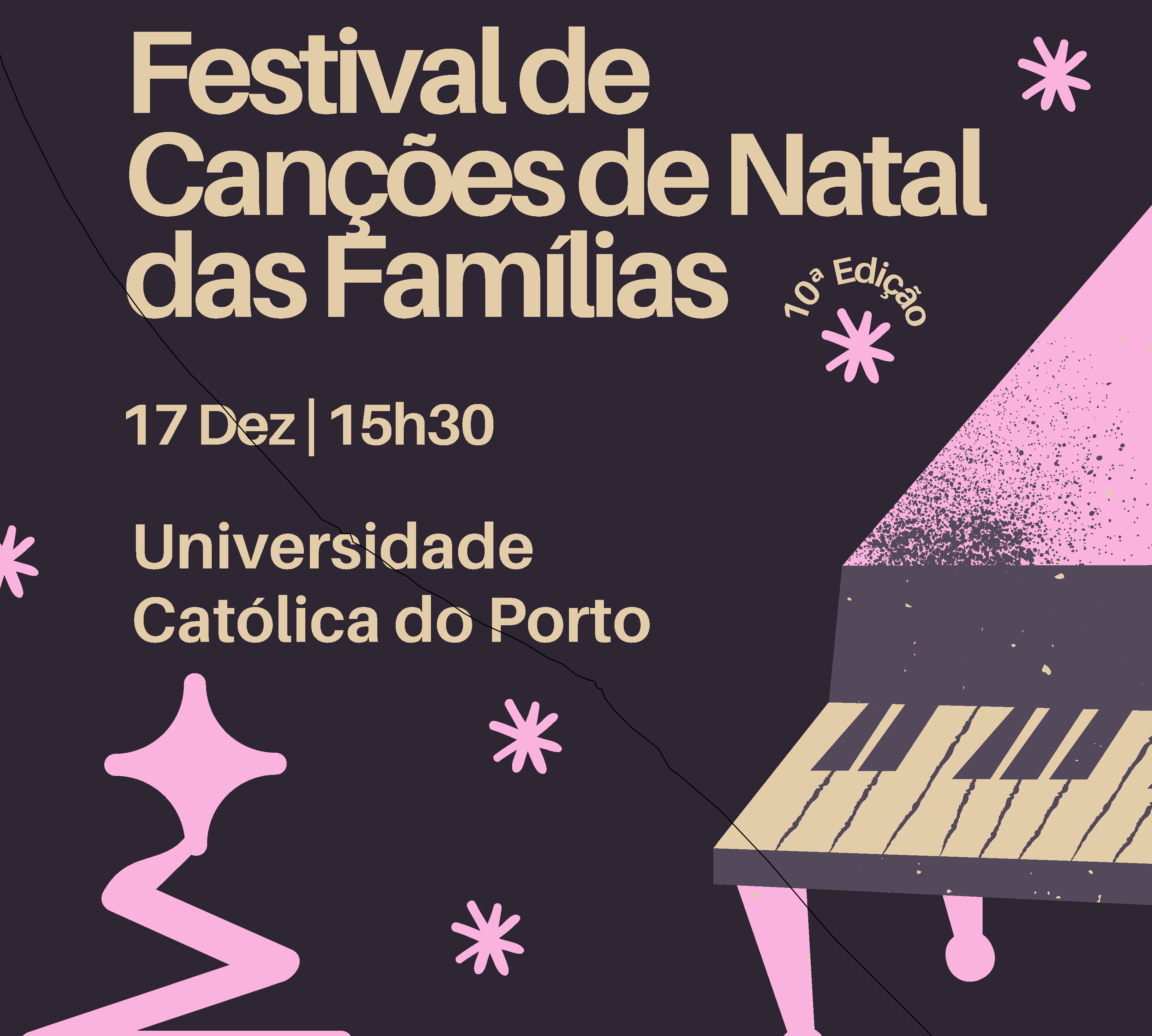 Após as ausências e saudades, vimos convidá-los a participar na 10ª edição do Festival de Canções de Natal das Famílias, que terá lugar no dia 17 de dezembro, pelas 15h30, no Auditório Ilídio Pinho da Universidade Católica do Porto.