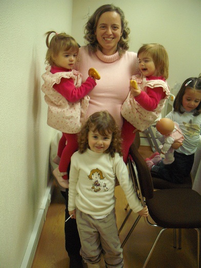 Somos a família Santos. A mãe Magda tem 38 anos e é Naturologista e de Medicina Tradicional Chinesa. Tenho 3 filhos: a Maria Leonor tem 4 anos e gosta de Hip Hop, a Maria Margarida e a Maria Madalena são gémeas e têm 2 anos e o que gostam mais de fazer é destruir a casa por isso penso que seguiriam algo como Engenharia ou construção civil. Vivemos na Póvoa de Santo adrião - Odivelas.
